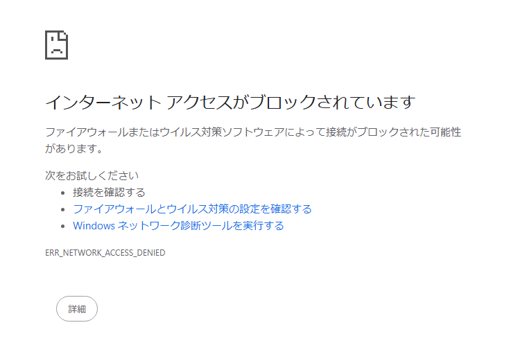 Chromeで「インターネット アクセスがブロックされています」ERR_NETWORK_ACCESS_DENIEDとなりネット接続できないエラーの直し方